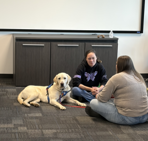 Each gathering welcomed a small group, creating space for meaningful conversation and connection. The sessions began with food and introductions before five service dogs in training — WCC’s Poyner, Jimmy, Lego, Ski and Ash — took center stage alongside their Puppy Raisers, who shared the significance behind the dogs’ namesakes and their roles in their journeys.